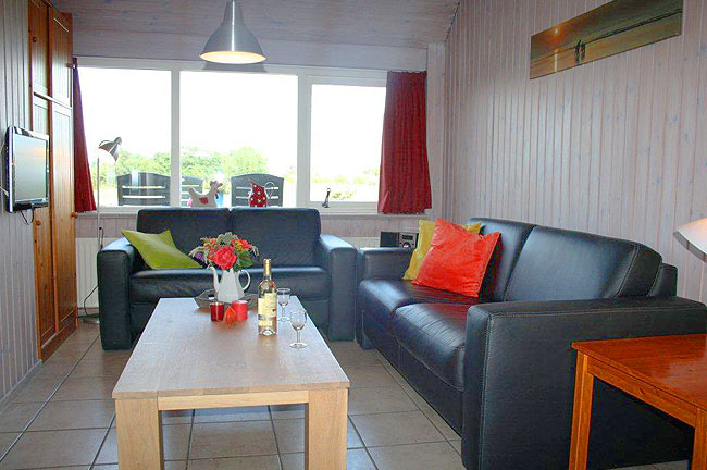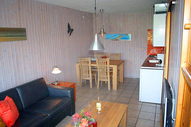 Sie sind alle für jeweils vier Personen eingerichtet. Die Aufteilung ist wie folgt: Wohnzimmer mit offener Küche unten und zwei getrennte Schlafzimmer oben