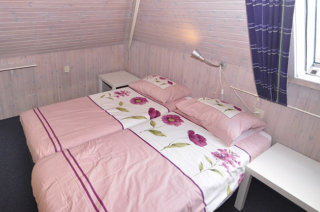 Oben befinden sich das Schlafzimmer mit zwei Einzelbetten., außerdem ein extra WC.
